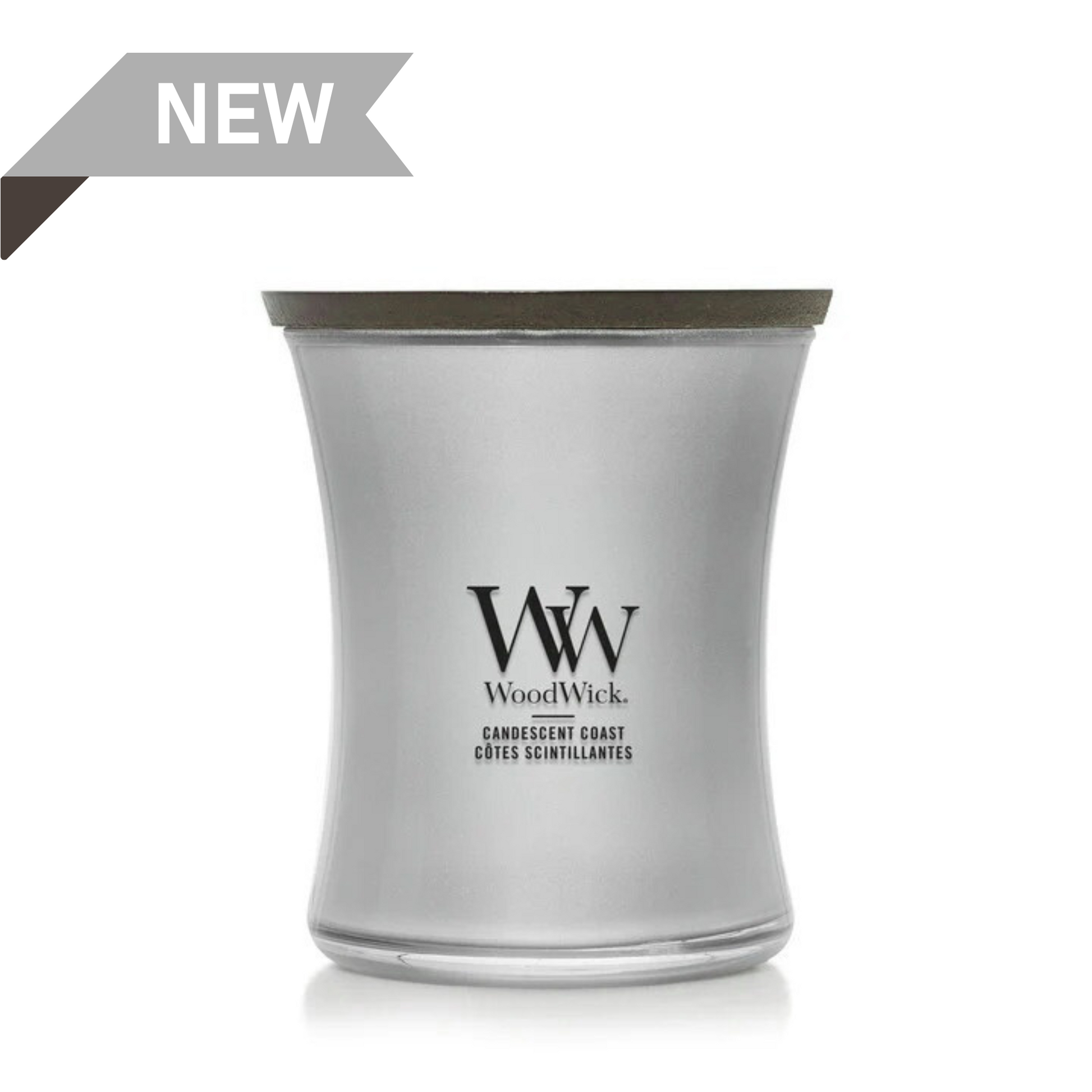 Ervaar de frisse, inspirerende geur van WoodWick Candescent Coast uit de Silver Metal Collection. Geïnspireerd door de betoverende kustlijnen en de ziltige oceaanlucht, brengt deze luxe kaars een serene en elegante sfeer in je huis.